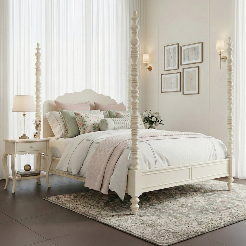 Long Cove-White Poster Bed