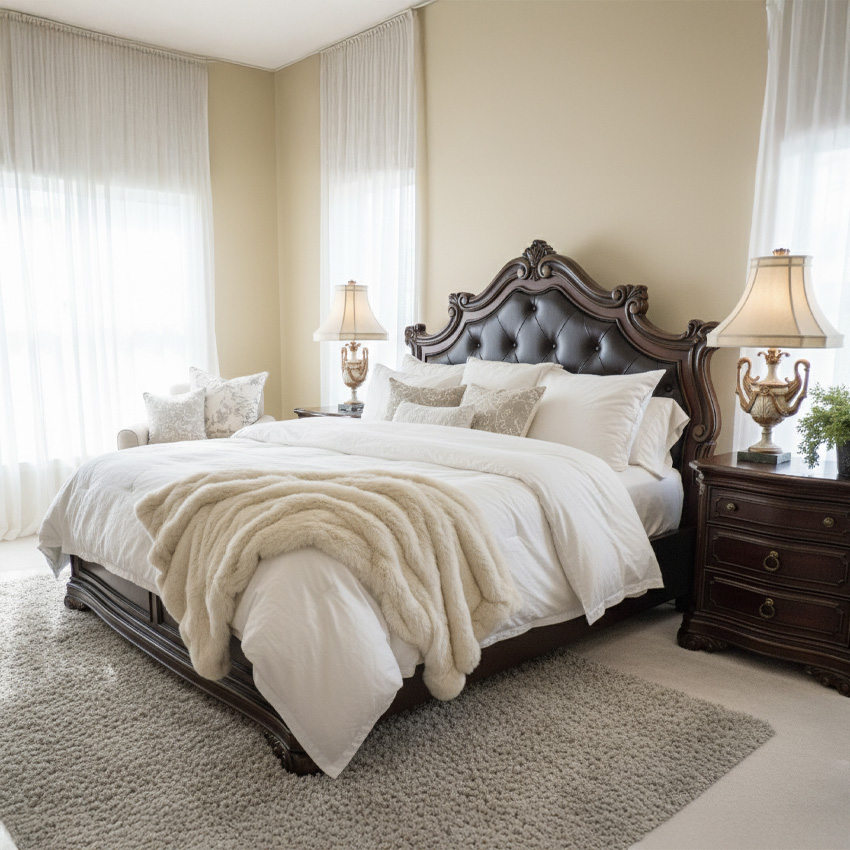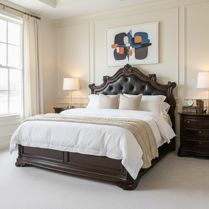 Grand European King Leather Panel Bed (침대)