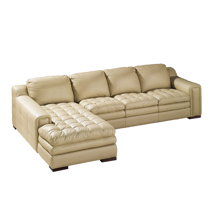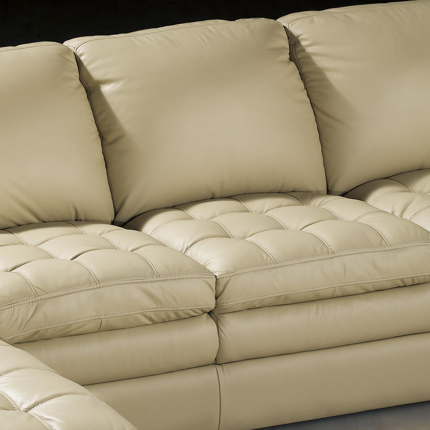 7491-Ivory Leather Chaise Sofa